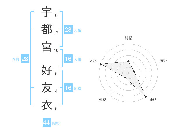 宇都宮 好友衣さんの総格は44画の2点!
