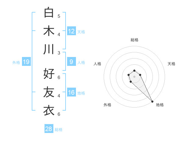 白木川 好友衣さんの総格は28画の1点!
