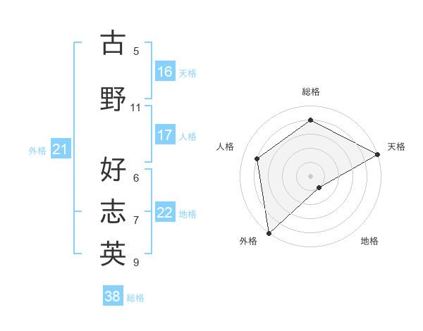 古野 好志英さんの総格は38画の4点!