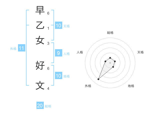 早乙女 好文さんを姓名の画数から五運を鑑定