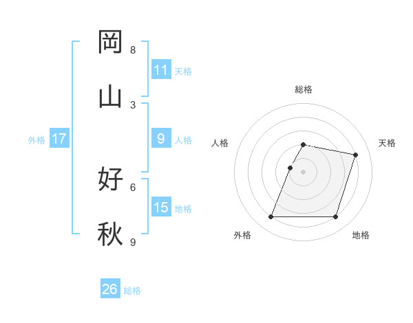 岡山 好秋さんの外格は17画の4点