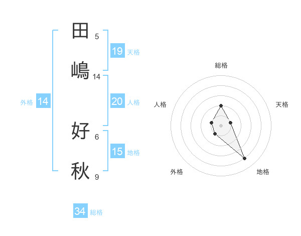 田嶋 好秋さんの外格は14画の1点!