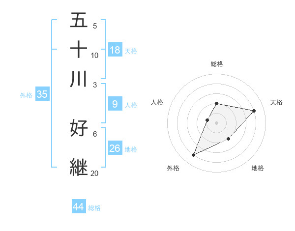 五十川 好継さんの総格は44画の2点!