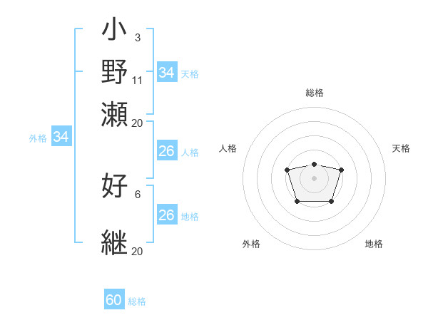 小野瀬 好継さんを姓名の画数から五運を鑑定