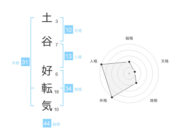 土谷 好転気さんを姓名の画数から五運を鑑定