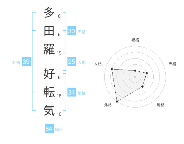 多田羅 好転気さんの外格は39画の5点!