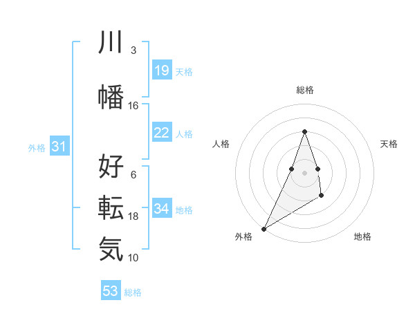 川幡 好転気さんを姓名の画数から五運を鑑定