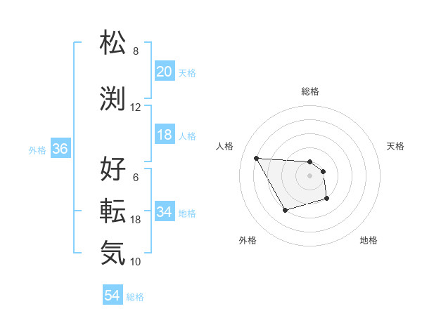 松渕 好転気さんを姓名の画数から五運を鑑定