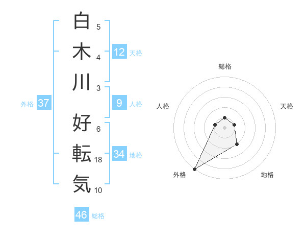白木川 好転気さんを姓名の画数から五運を鑑定
