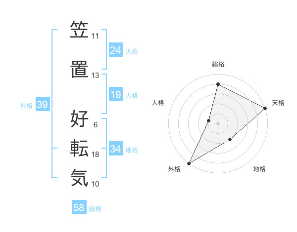 笠置 好転気さんを姓名の画数から五運を鑑定