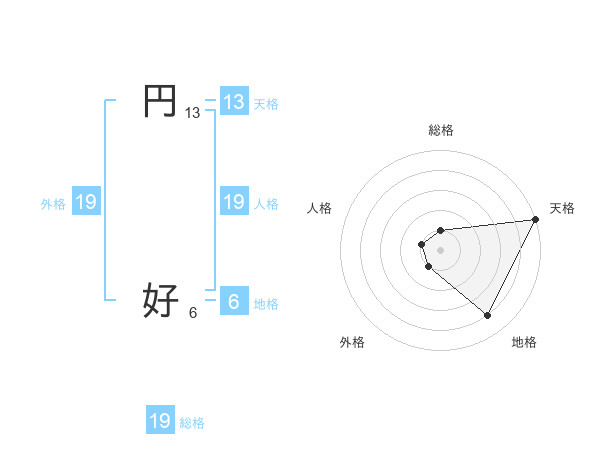 円 好さんの総格は19画の1点!