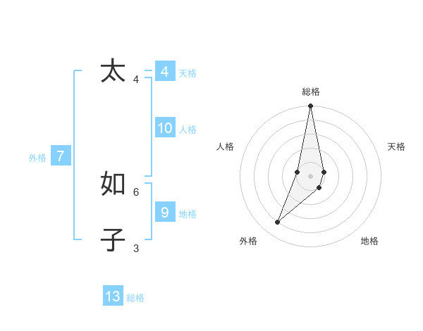 太 如子さんの総格は13画の5点!