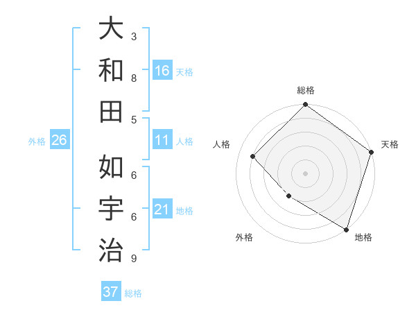 大和田 如宇治さんを姓名の画数から五運を鑑定