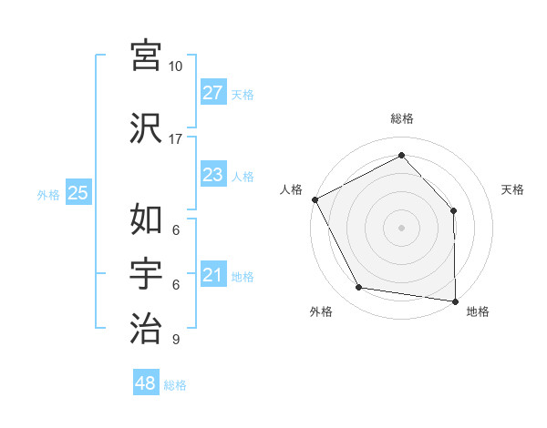 宮沢 如宇治さんを姓名の画数から五運を鑑定