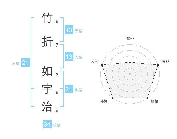 竹折 如宇治さんを姓名の画数から五運を鑑定