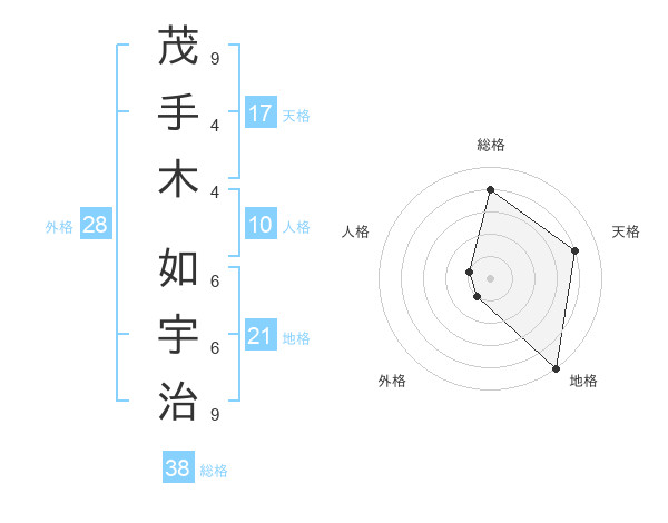 茂手木 如宇治さんの総格は38画の4点