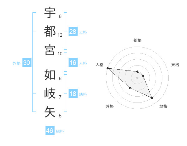 宇都宮 如岐矢さんを姓名の画数から五運を鑑定