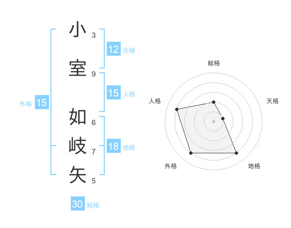 小室 如岐矢さんを姓名の画数から五運を鑑定