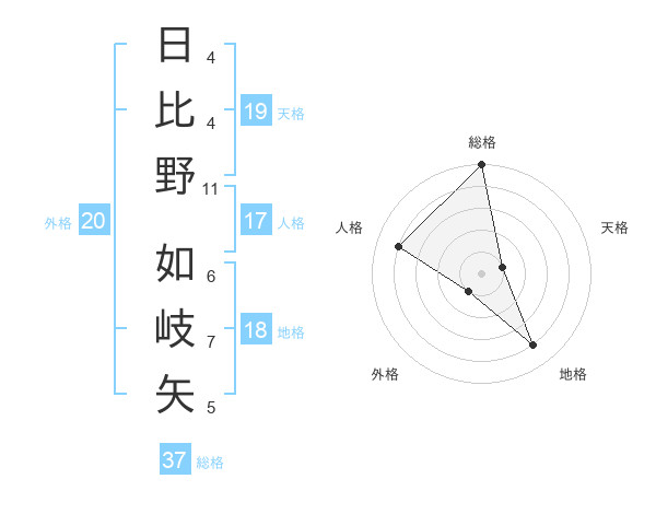 日比野 如岐矢さんを姓名の画数から五運を鑑定