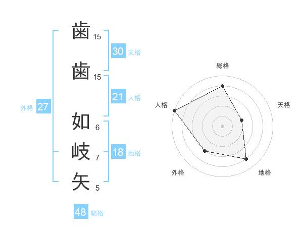 歯歯 如岐矢さんの天格は30画の2点!