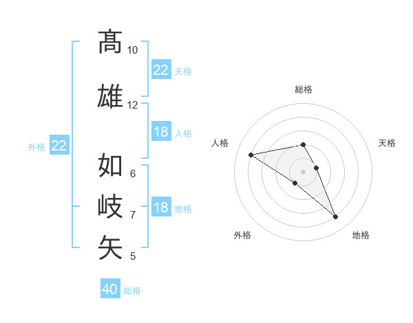 髙雄 如岐矢さんの総格は40画の2点!