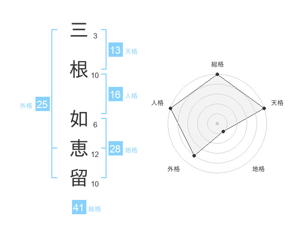 三根 如恵留さんを姓名の画数から五運を鑑定