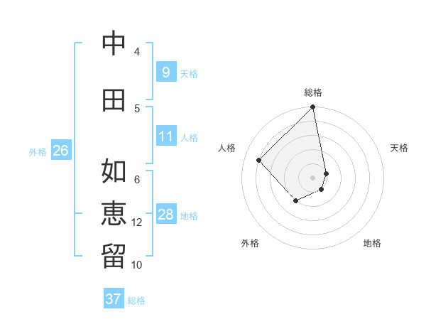 中田 如恵留さんの総格は37画の5点!