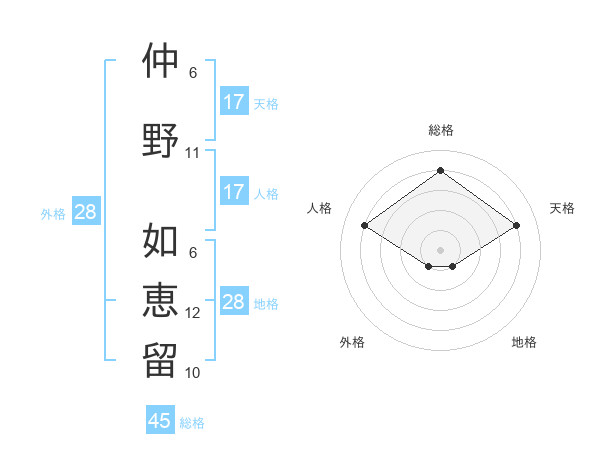 仲野 如恵留さんを姓名の画数から五運を鑑定