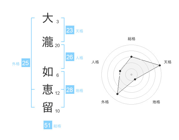 大瀧 如恵留さんを姓名の画数から五運を鑑定
