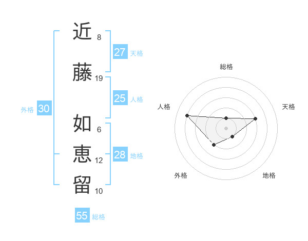 近藤 如恵留さんを姓名の画数から五運を鑑定