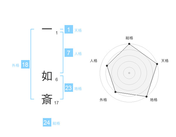 一 如斎さんの総格は24画の5点!