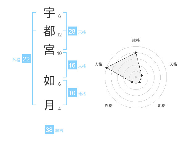 宇都宮 如月さんを姓名の画数から五運を鑑定
