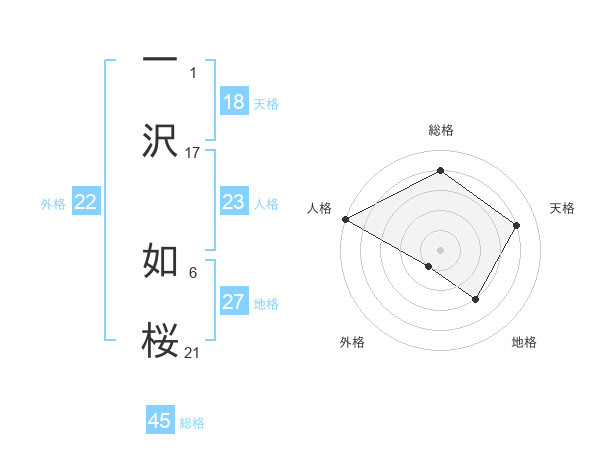 一沢 如桜さんを姓名の画数から五運を鑑定