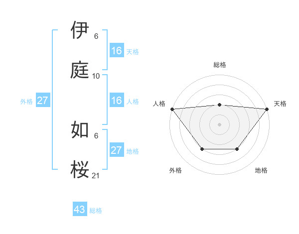 伊庭 如桜さんの天格は16画の5点!
