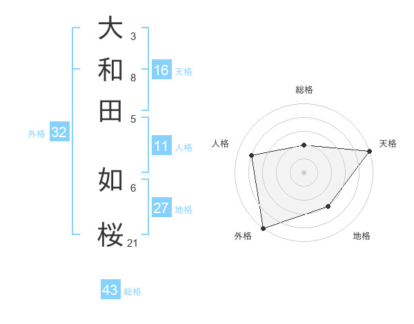 大和田 如桜さんの外格は32画の5点!