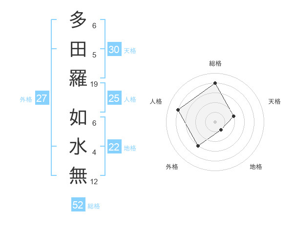 多田羅 如水無さんを姓名の画数から五運を鑑定