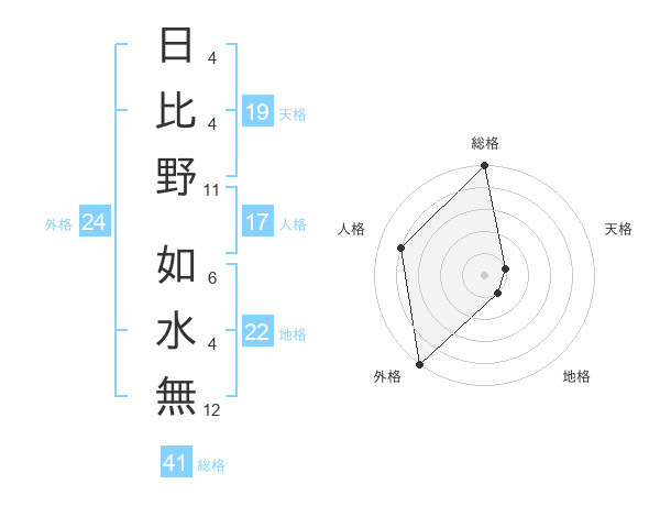 日比野 如水無さんを姓名の画数から五運を鑑定