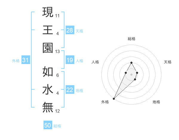 現王園 如水無さんを姓名の画数から五運を鑑定