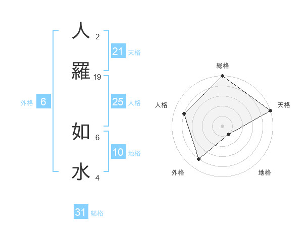 人羅 如水さんの天格は21画の5点!