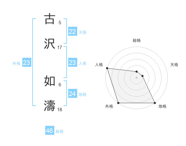 古沢 如濤さんの外格は23画の5点!