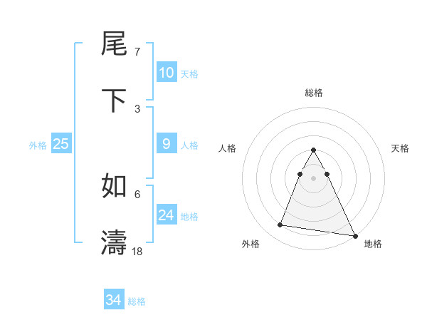 尾下 如濤さんを姓名の画数から五運を鑑定
