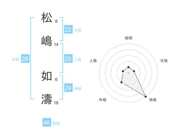 松嶋 如濤さんを姓名の画数から五運を鑑定