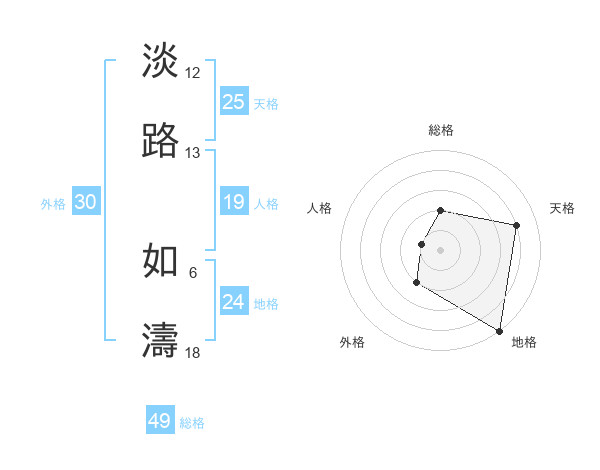 淡路 如濤さんを姓名の画数から五運を鑑定