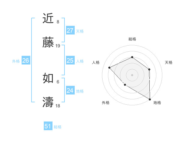 近藤 如濤さんを姓名の画数から五運を鑑定