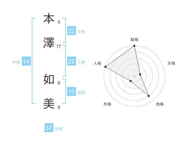 本澤 如美さんの天格は22画の1点!
