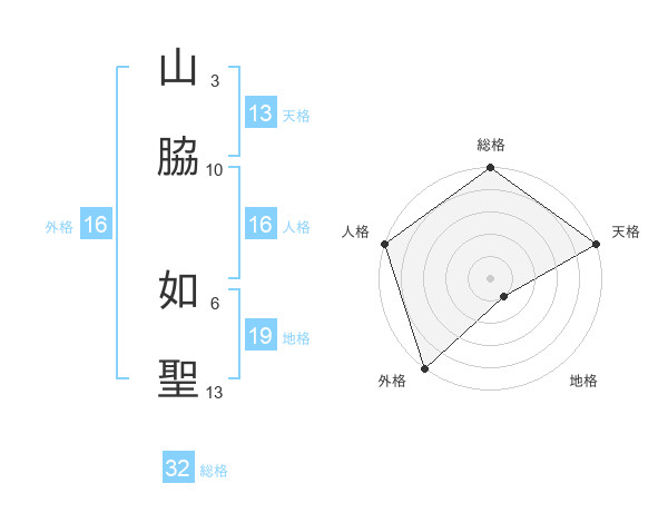 山脇 如聖さんを姓名の画数から五運を鑑定