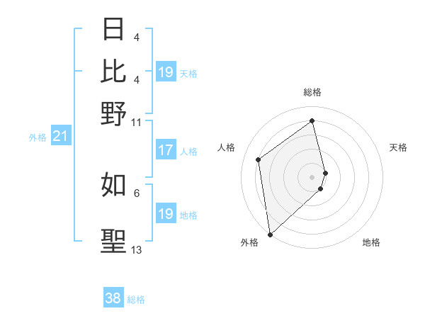日比野 如聖さんを姓名の画数から五運を鑑定
