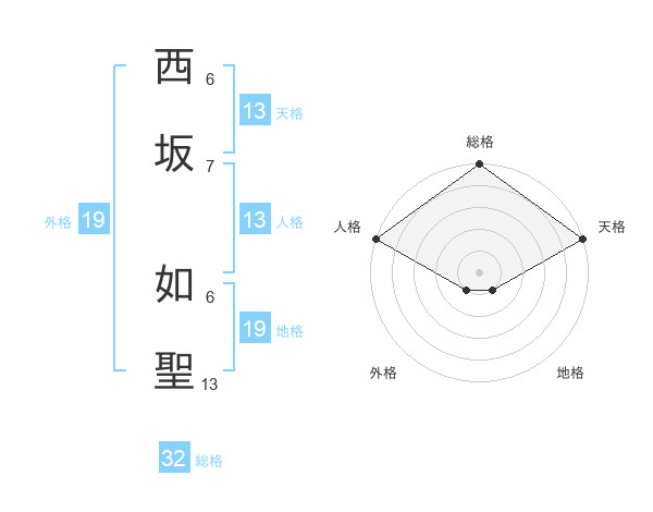 西坂 如聖さんを姓名の画数から五運を鑑定