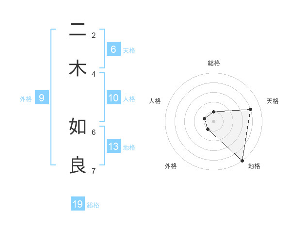 二木 如良さんの地格は13画の5点!