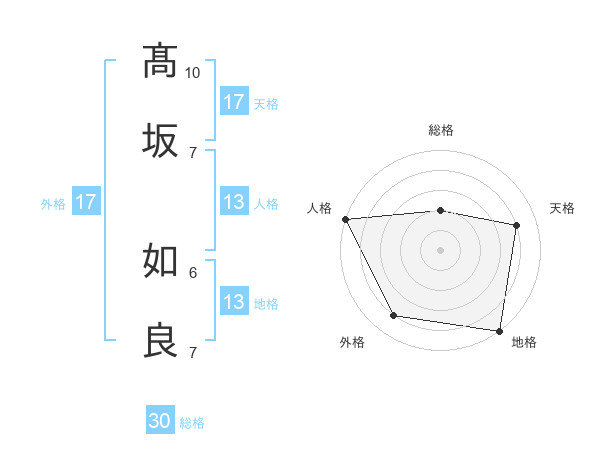 髙坂 如良さんを姓名の画数から五運を鑑定